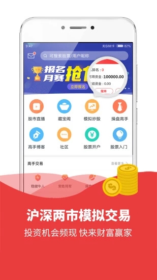 模拟炒股高仿真,方便易用,每日股票行情热点实时推送,简洁易用的交互社区让你足不出户享受炒股专家贴身指导,股市学堂和证券词典可以随用随取。