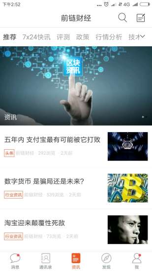 《前链财经》是一款有着海量财经新闻资讯的阅读软件,这里可以一键发财经帖子,轻松获取大量的粉丝哦,一键关注,收藏帖子,精简的个人主页,支持实名认证,还有我的问答,我的圈子,一键分享链接信息给你身边的朋友,行情,朋友动态信息,话题问答等一系列服务功能,在线扫一扫,一键推荐人脉信息,行情分析哦!