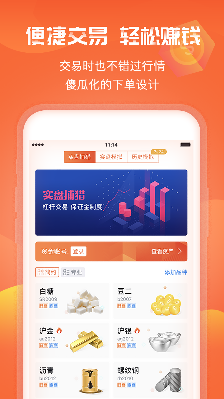 期货捕猎者APP是鑫鼎盛期货有限公司为广大期货投资者打造的集期货交易、期货行情、期货开户、投资资讯、业务办理、一对一客服等多功能于一体的期货/期权/资讯/理财/投资金融服务。投资者可以通过APP交易农产品、贵金属、化工、钢铁等大宗商品期货合约,是安全可靠的期货交易软件。