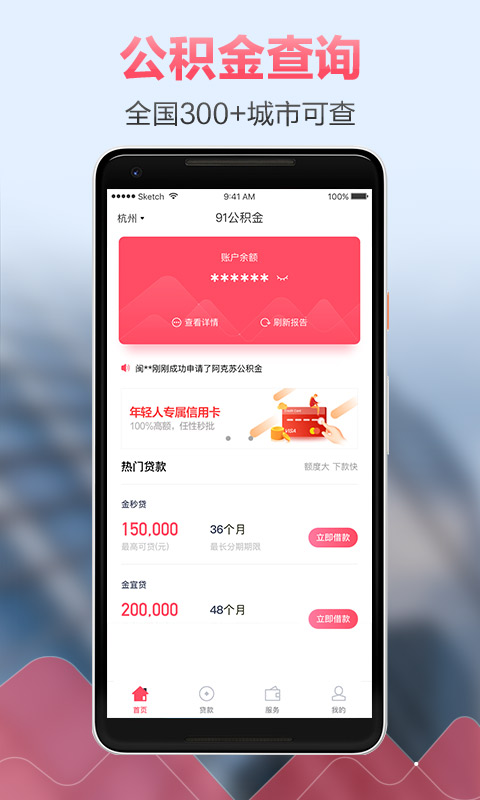 91公积金是一款非常不错的公积金查询和金融资讯服务平台;覆盖全国各个城市,四百多个城市可查;这里有各种公积金最新热门资讯让你轻松知晓;精选贷款产品,为你提供多样化贷款选择。欢迎下载使用!