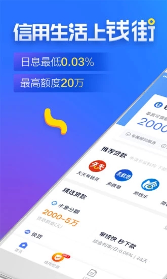 《钱街》是一款十分好用的借钱金融类理财软件,这里支持急速贷款,让手头吃紧的你随时解决当前的烦恼,操作简单,只需一张身份证就能借钱,各种银行卡,企业,房贷,车贷瞬间还清哦!快来本页面下载吧!