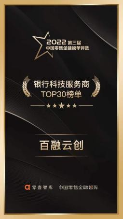 在数字经济的推动下,科技的运用日益普及深化,我国银行业正在加速向数字化、智能化推进。银行业积极拥抱转型潮流,通过采用科技赋能、场景互联等策略,不断向外部拓展合作伙伴。日前,在第四届中国零售金融发展峰会上,中国零售金融智库联合零壹智库发布了“ 2022 银行科技服务商TOP30”榜单,百融云创凭借出色的前沿技术和数智化能力荣登榜单。